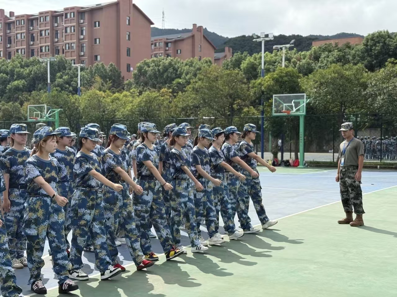 训练场上,嘹亮的口号声此起彼伏,成为校园里最动人的旋律。新生们在教官的指导下,从最基础的立正、稍息、齐步走练起,每一个动作都力求标准规范。尽管烈日当空,汗水浸湿了衣衫,团结的种子在潜移默化中生根发芽。