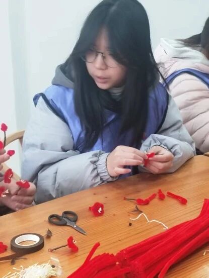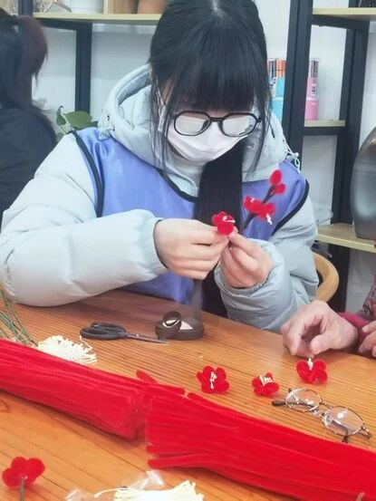 1月10日,财务与会计学院财菁先锋志愿者协会组织志愿者们走进紫霞社区,开展以“梅花手工制作”为主题的志愿活动,用巧手与真心为社区老年居民送去冬日里的温暖与欢乐。