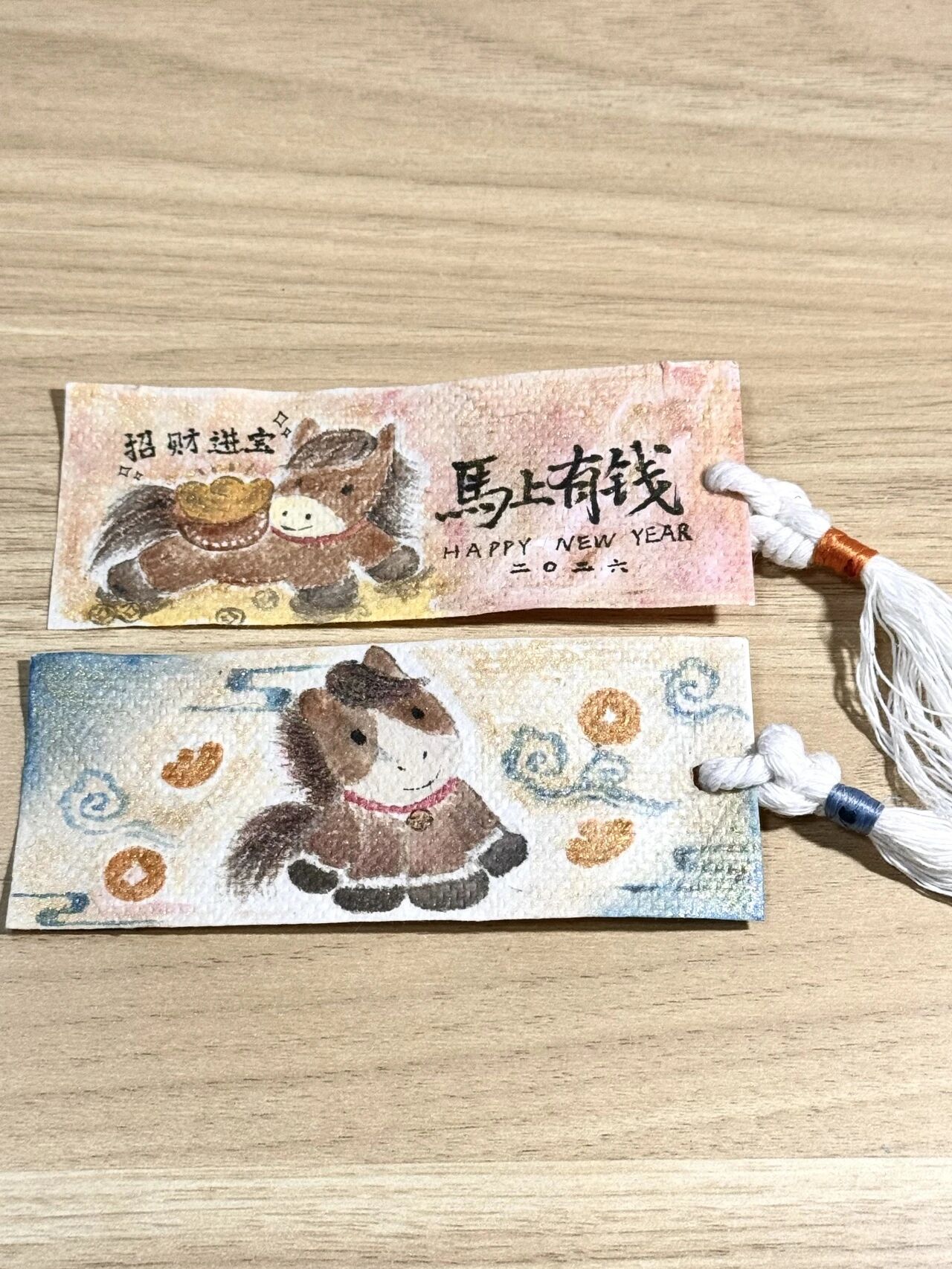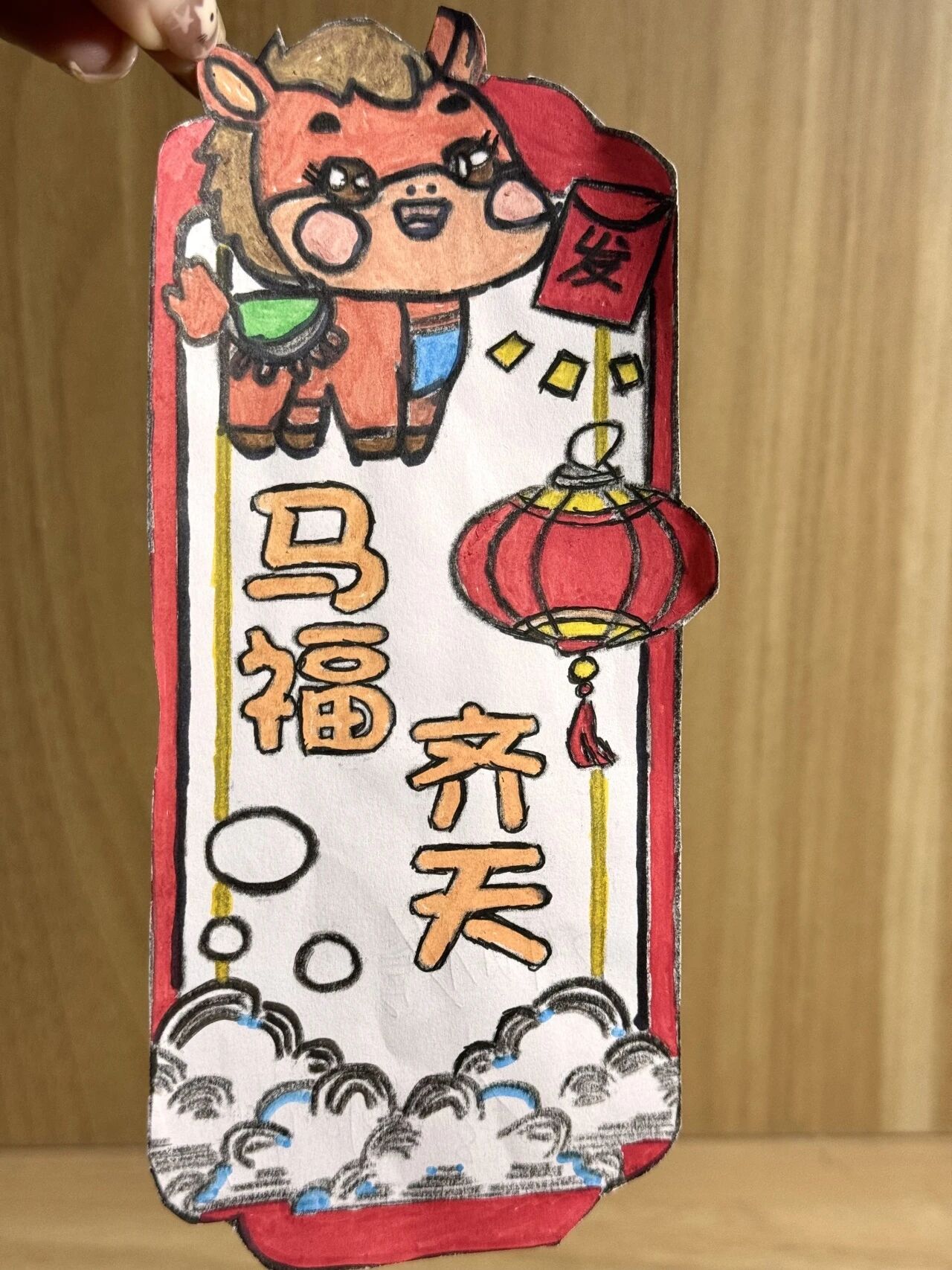 本次活动鼓励同学们发挥创意巧思,将新春元素与个人风格融入书签创作。大家各展所长、大胆创新:有的以生肖马为原型,搭配如意、祥云等传统纹样,绘出灵动鲜活的祥瑞图景;有的将福字、春联缩影与书签形制巧妙结合,让祝福跃然纸上;还有的同学别出心裁,在传统框架中融入现代潮流元素,打造出兼具复古韵味与青春活力的个性书签。这些作品或清新雅致,或色彩明艳,每一枚都承载着独特的巧思与心意。