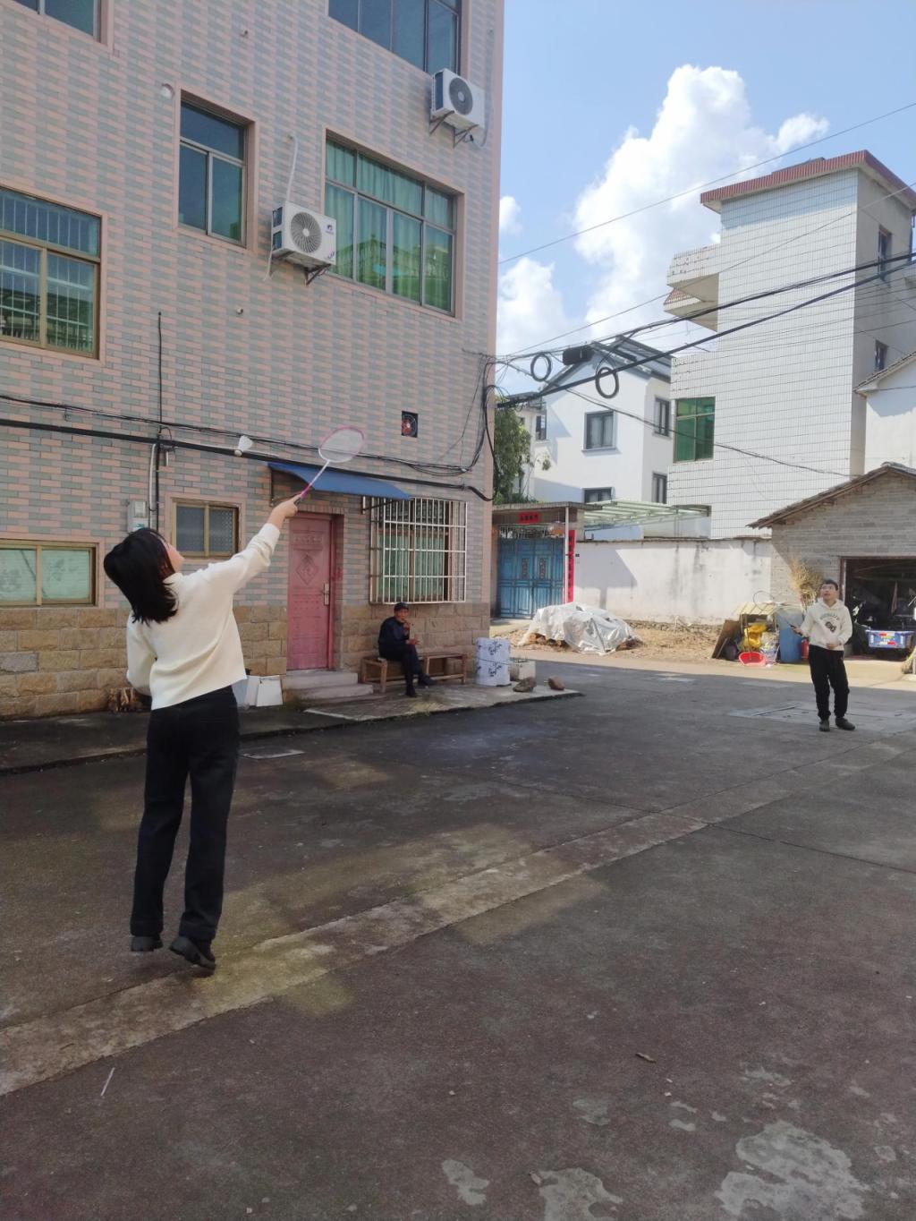 为丰富寒假生活、增强体质,2月14日25大数据与会计1班的邱晓蕊在老家与家人开展了羽毛球运动。他们尽情挥拍、奔跑、跳跃,院子里满是轻松愉快的笑声,在轻松温馨的氛围里完成了这次有意义的锻炼。