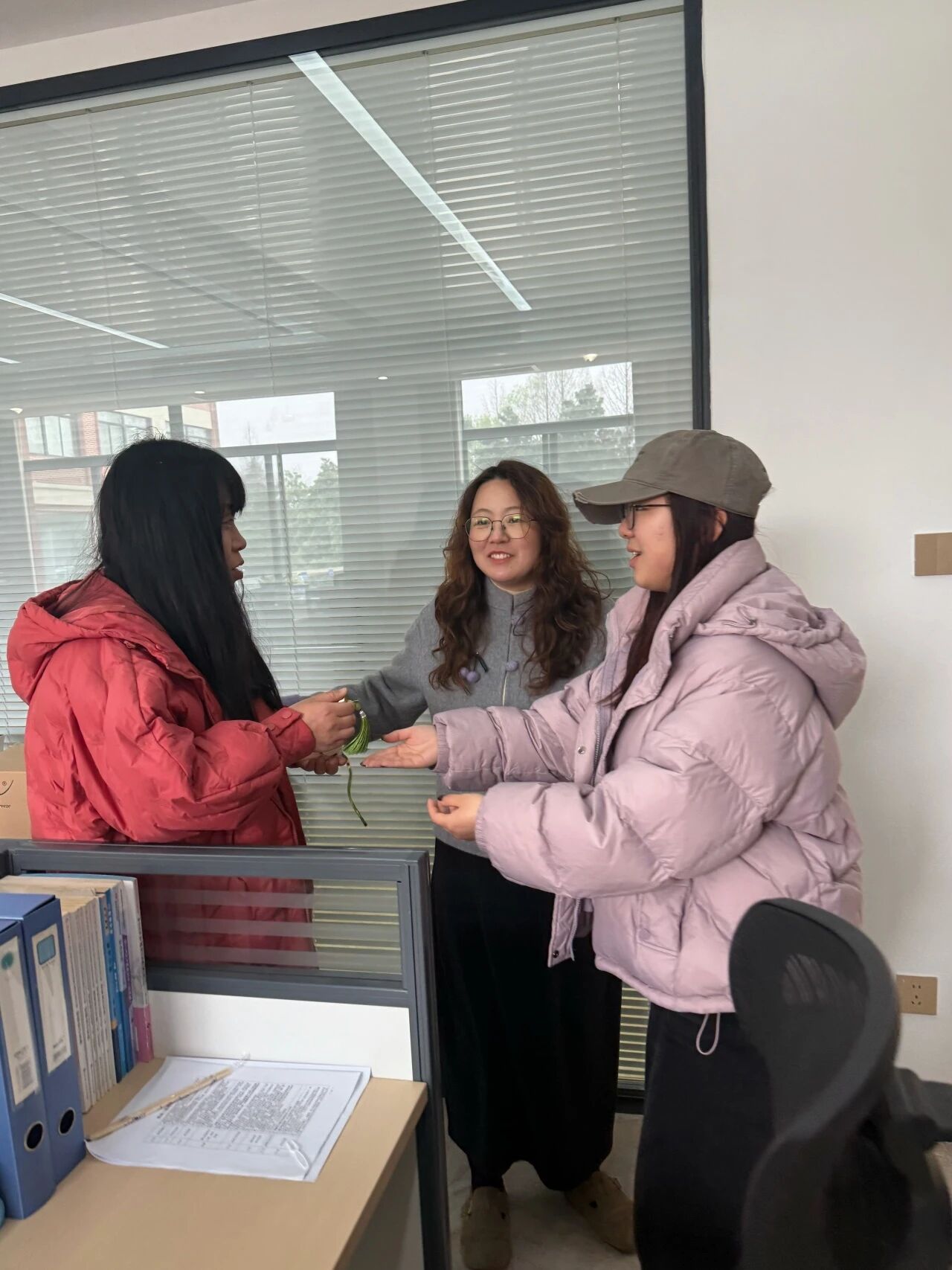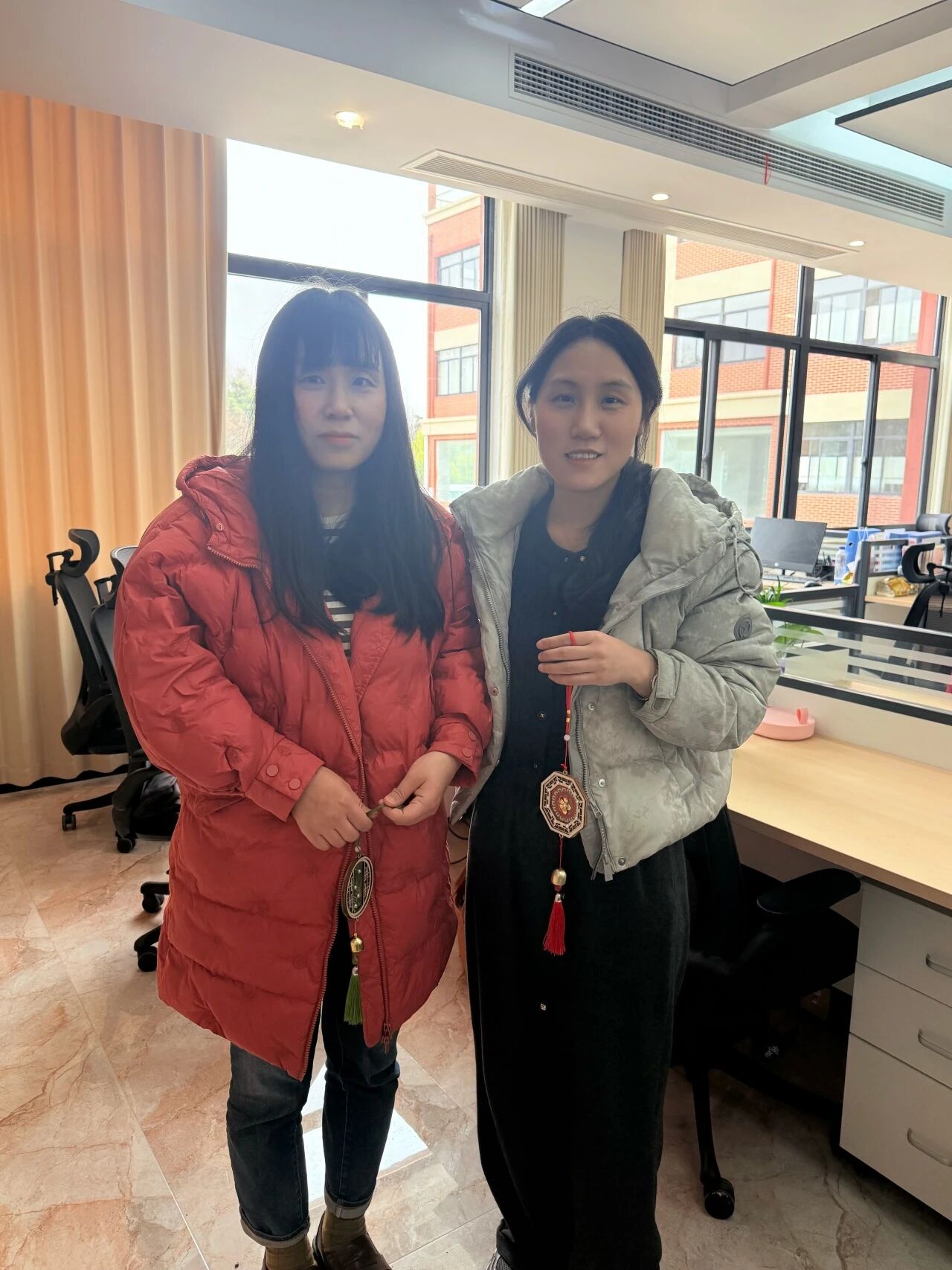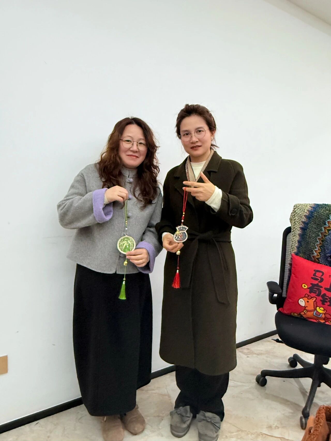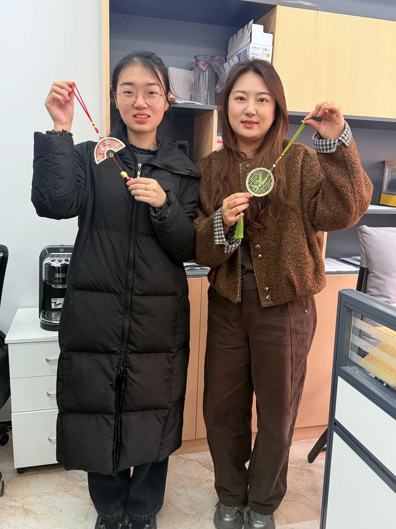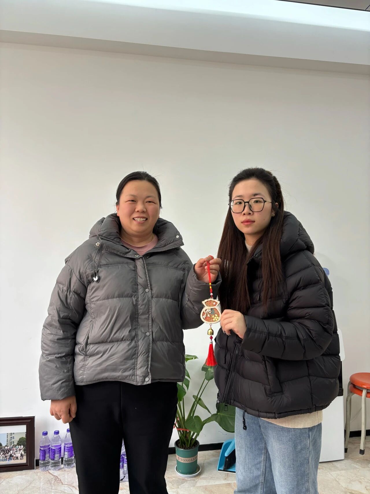 活动结束后,同学们带着这份沉甸甸的心意,走进一间间办公室,亲手将制作精美的铃铛送到每位老师手中。一句清脆的“节日快乐”,一枚小巧精致的宋锦铃铛,瞬间拉近了师生之间的距离,让温暖与感动在彼此心间悄然流淌。