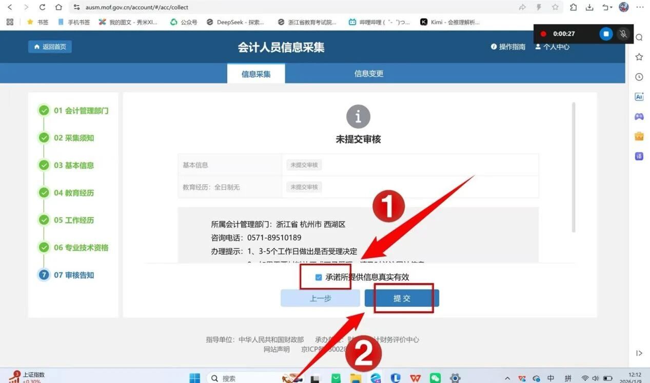 在审核告知处提交,审核会在1~3个工作日内出结果,请及时关注,若审核通过及时参加会计考试报名