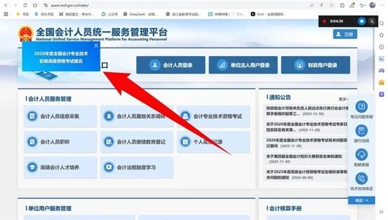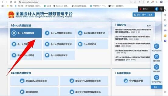 查找浙江会计之家https://kjzj.czt.zj.gov.cn/后点击飘窗进入全国会计人员统一服务平台