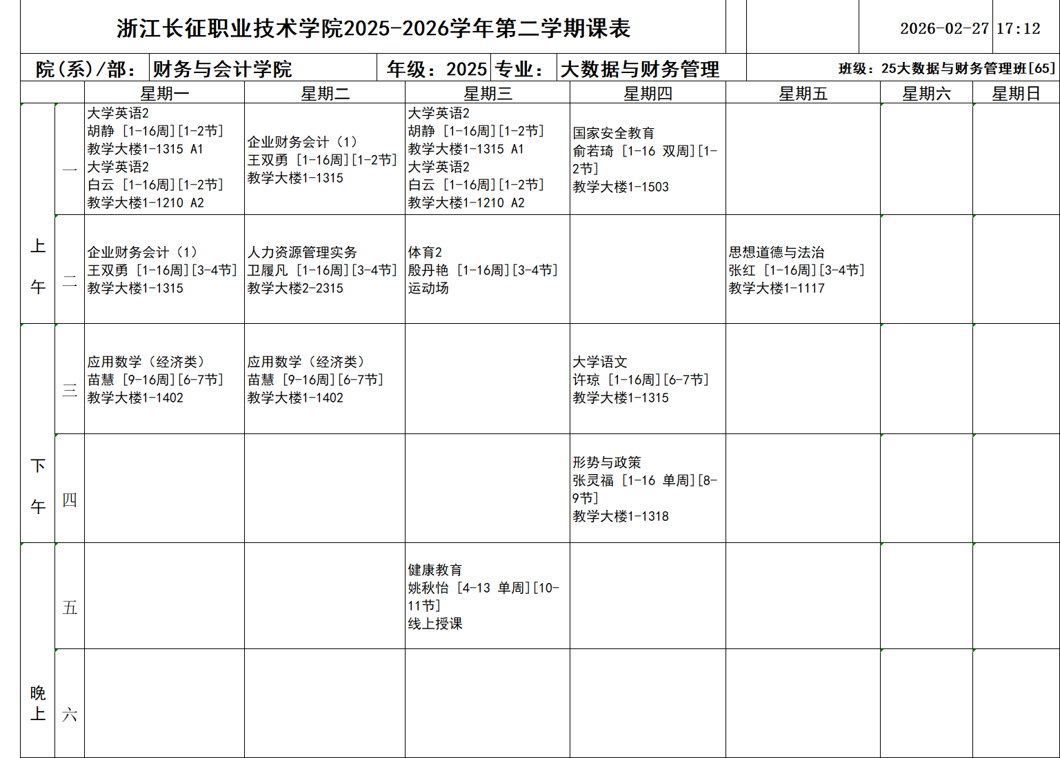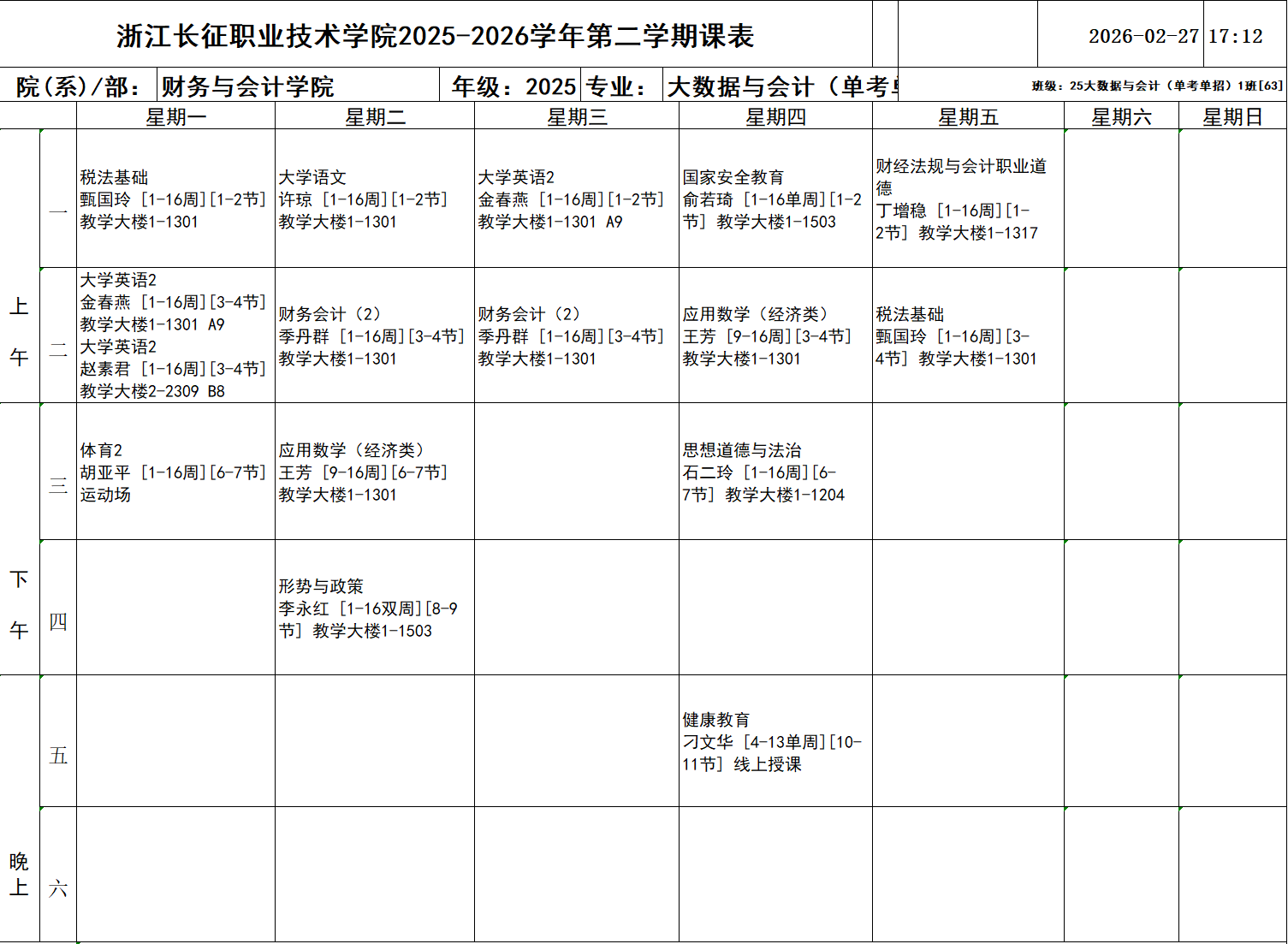 25大数据与会计1班