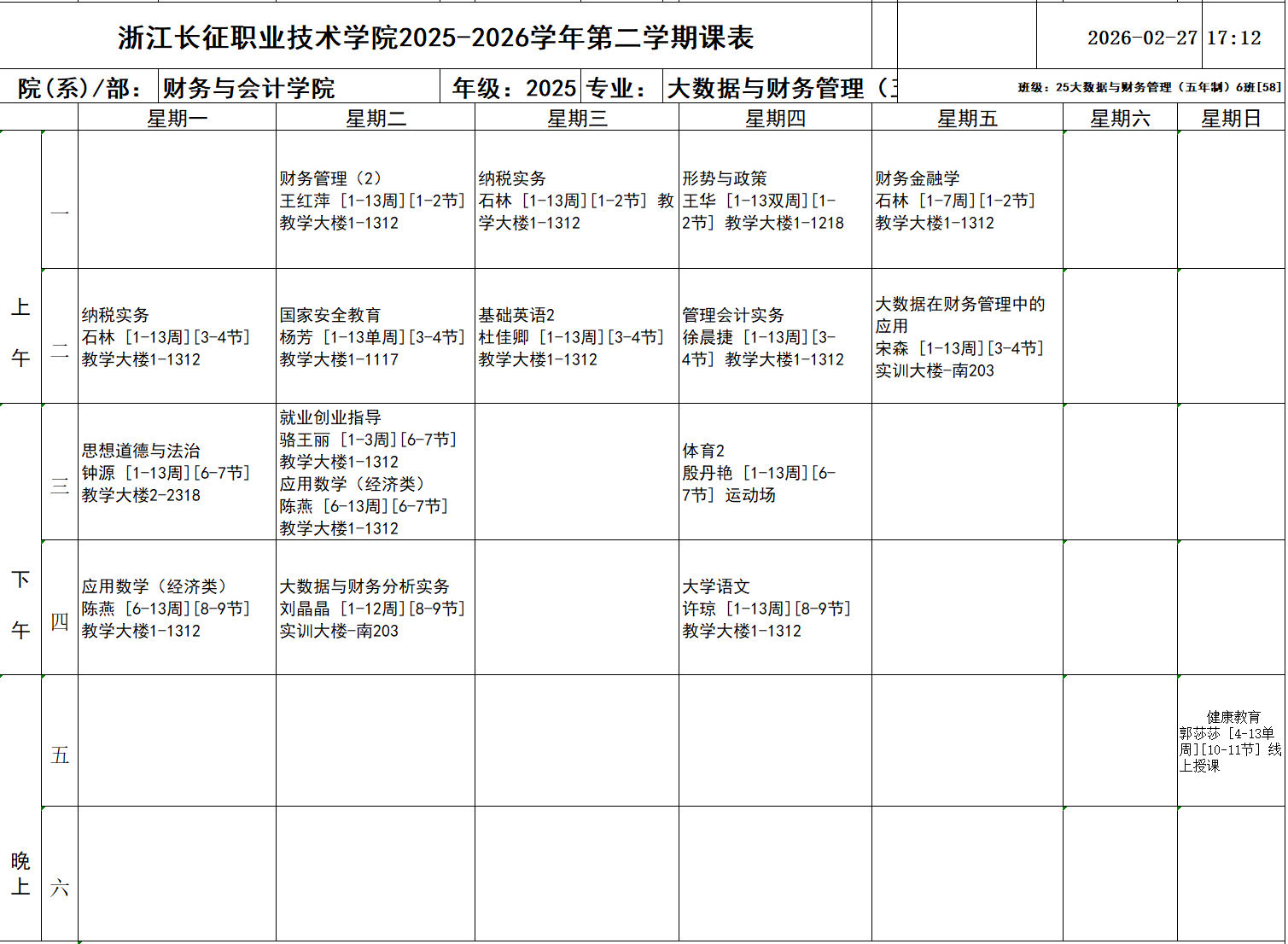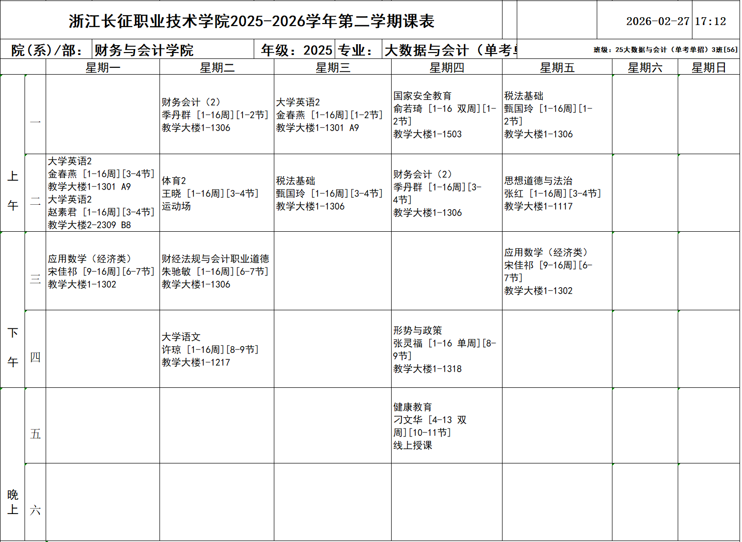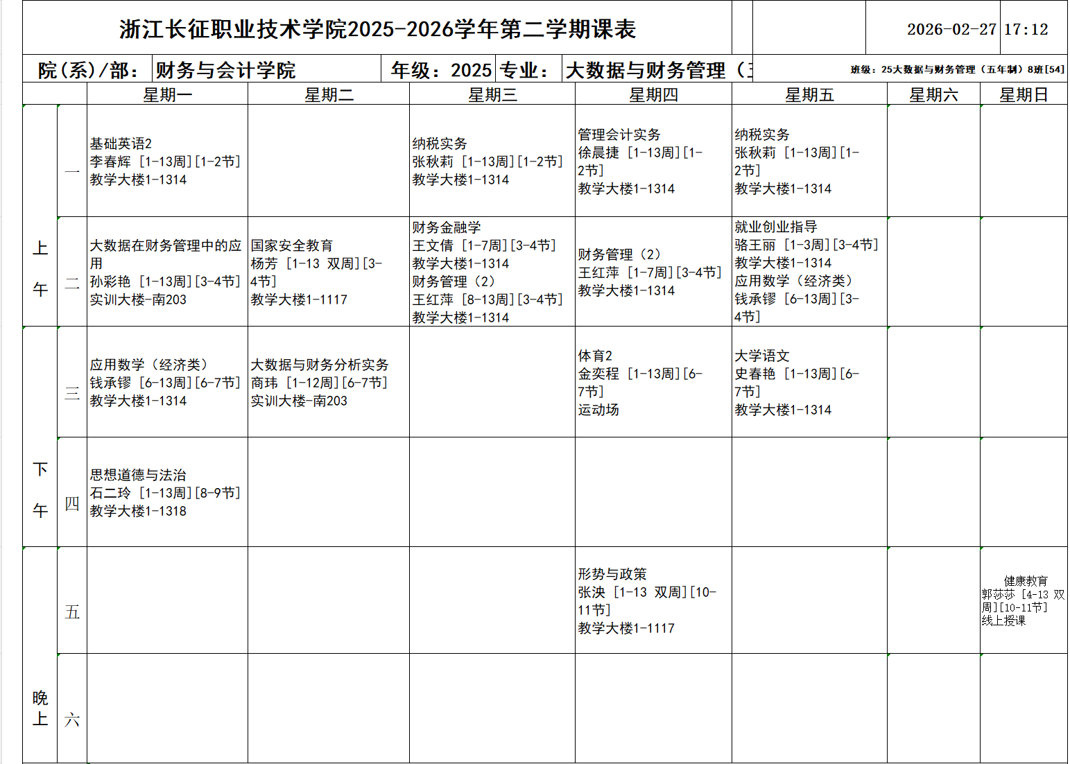 25大数据与会计2班
