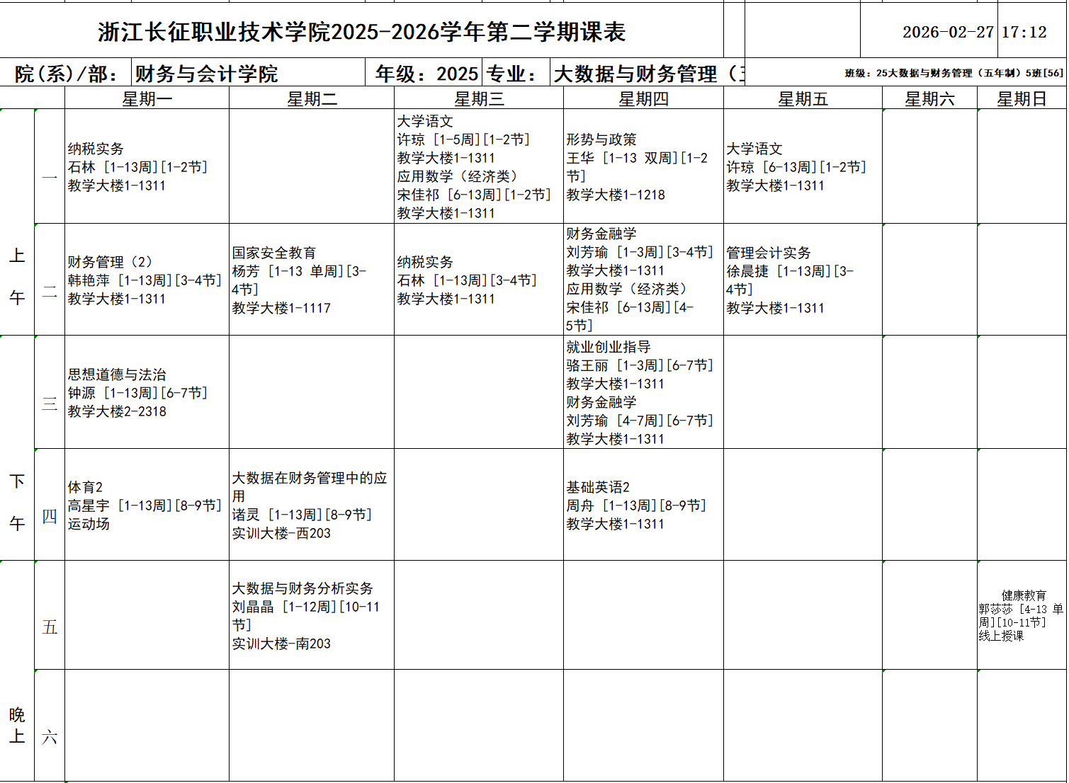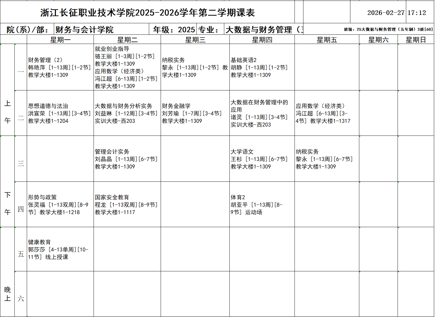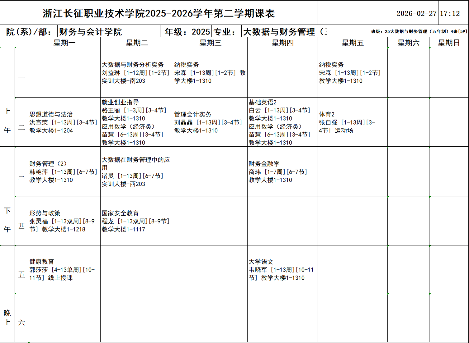 25大数据与财务管理(五年制)5班