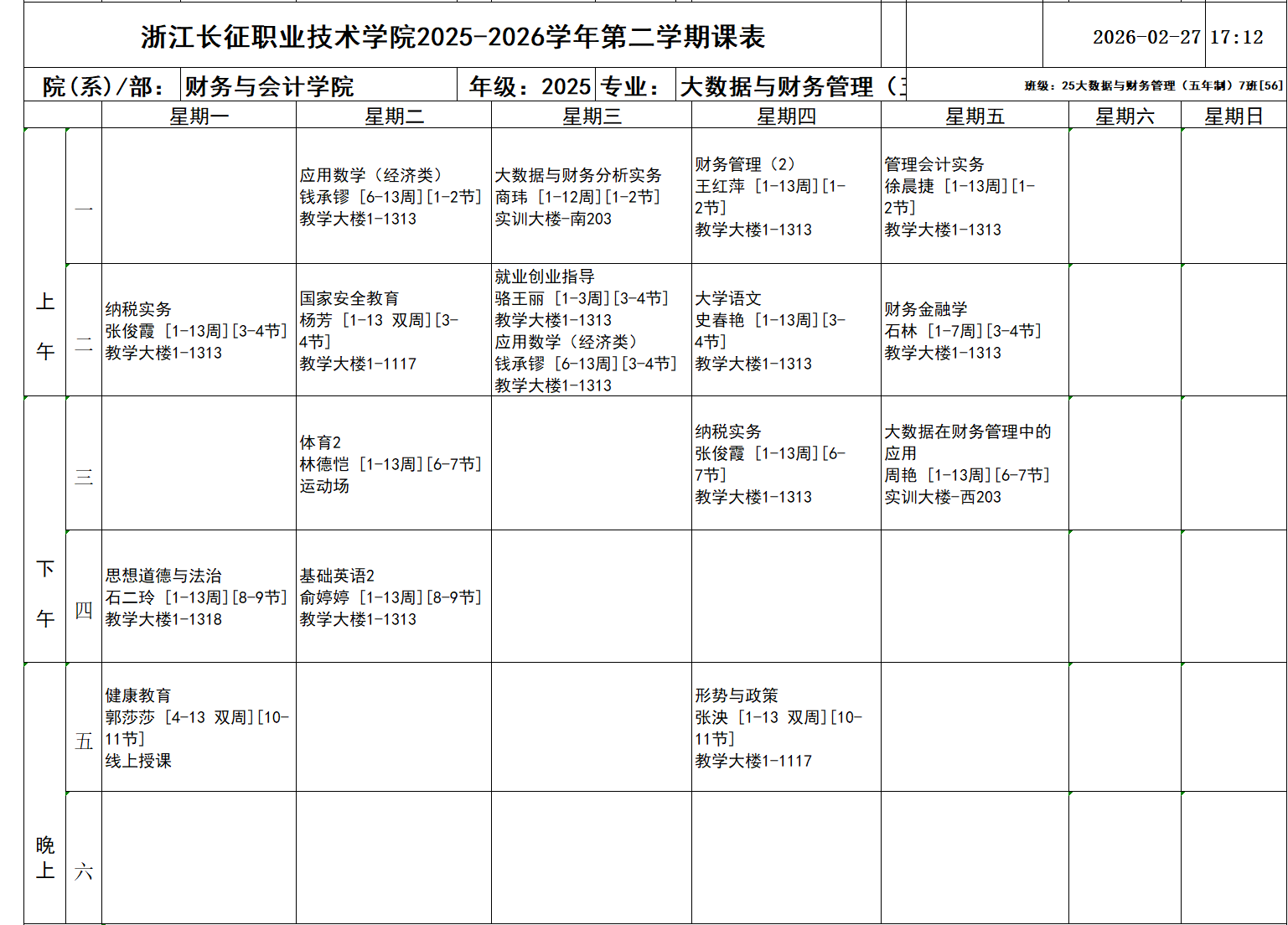 25大数据与财务管理(五年制)7班