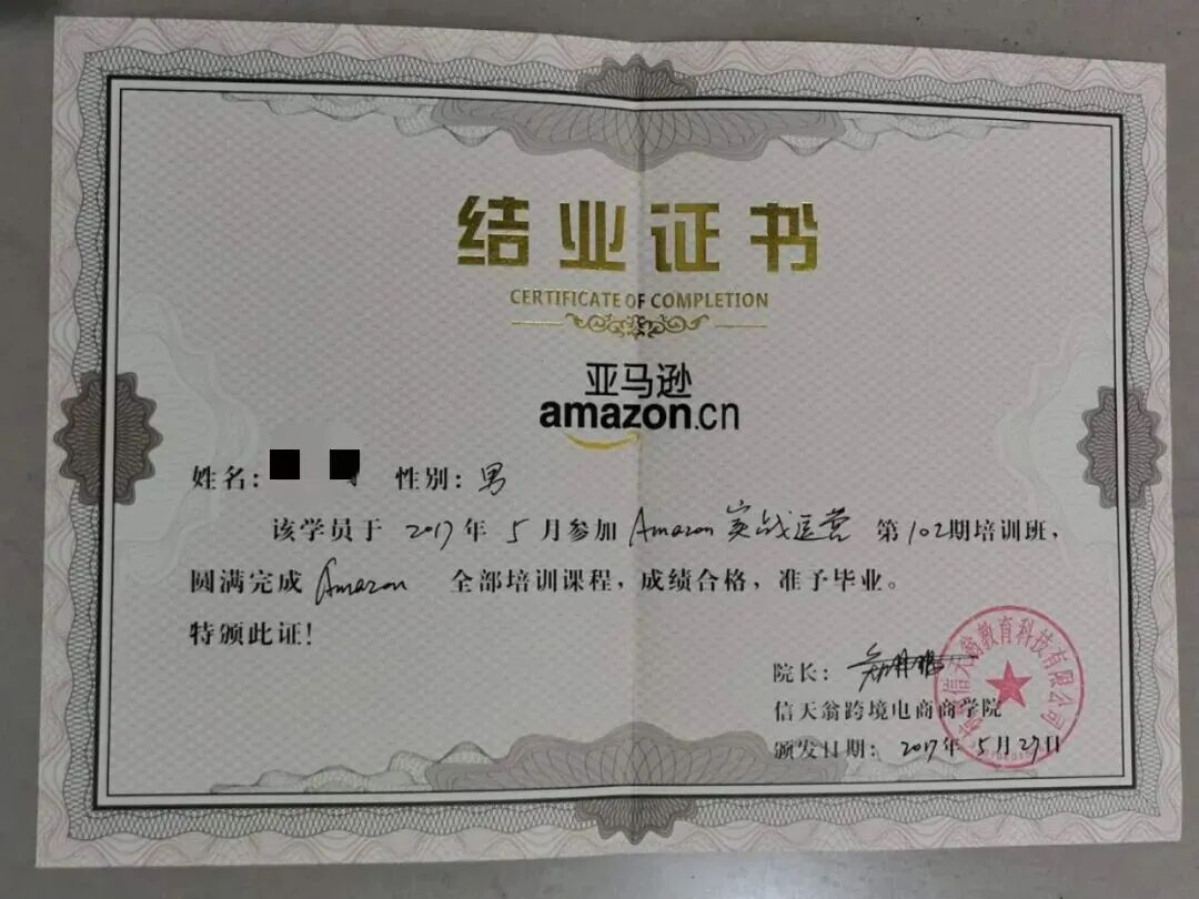 亚马逊实战运营结业证书
