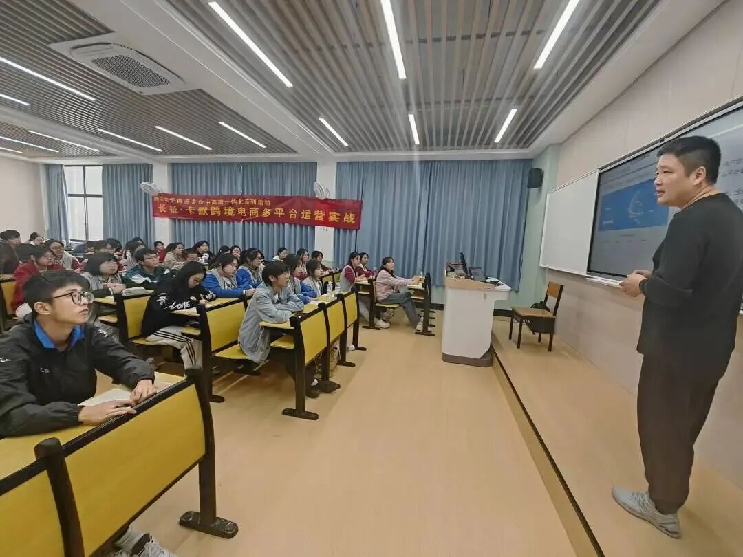 校企共建有多个校内跨境电商工作站(长征·卡默跨境电商多平台运营、长征·豪歌速卖通工作站、长征·昂拓TikTok直播工作站),企业导师常驻校内工作站,手把手指导学生开展真实店铺运营、海外直播带货、跨境供应链实践,实现"所学即所用"。学生大一即可参与真实项目,大二阶段已能独立运营跨境店铺或带队直播,毕业前积累丰富项目经验与创业资源,真正实现高质量就业与创业无缝衔接。