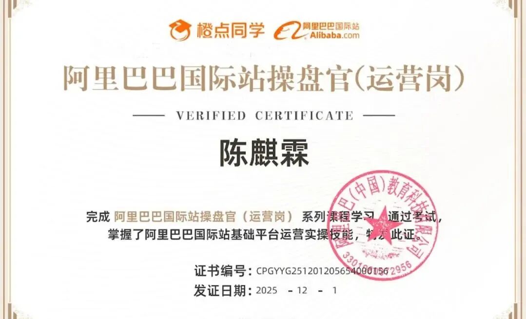 阿里巴巴国际站操盘官证书