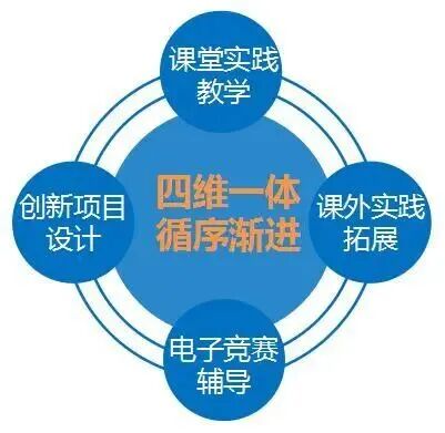 电子测量技术、EDA技术及数字系统设计、电工电子技术、工程图学与CAD、电气控制技术、人工智能导论、电子工艺CAD、PLC原理与应用、单片机技术及应用、智能电子产品设计与制作、嵌入式系统设计与开发、通信与网络技术、智能应用系统集成与维护、传感器原理及应用和职业能力应用训练等,以及多项课程的的实践环节。其中课堂实践教学、课外实践拓展、电子竞赛辅导、创新项目设计“四维一体”课程体系。
