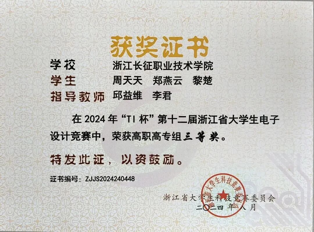 2024年参加第十二届浙江省大学生电子设计大赛获得三等奖。